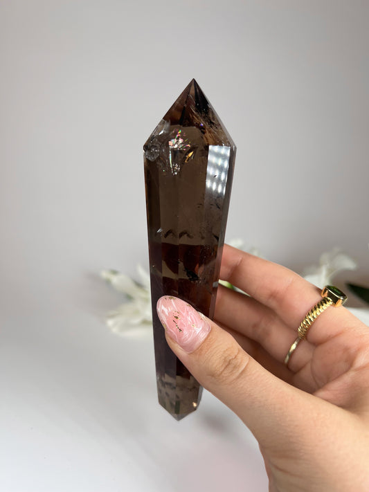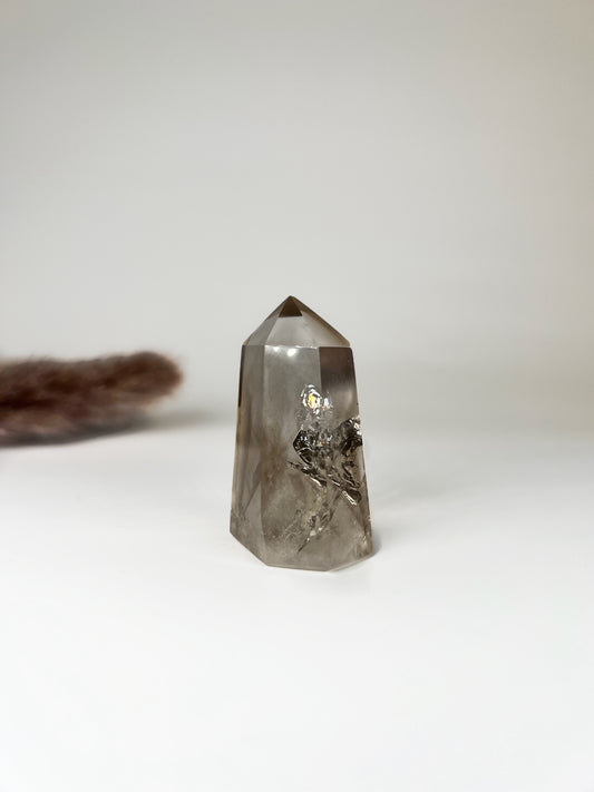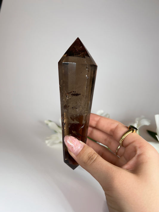 Smoky Citrin Rohstein mit schwarzem Turmalin