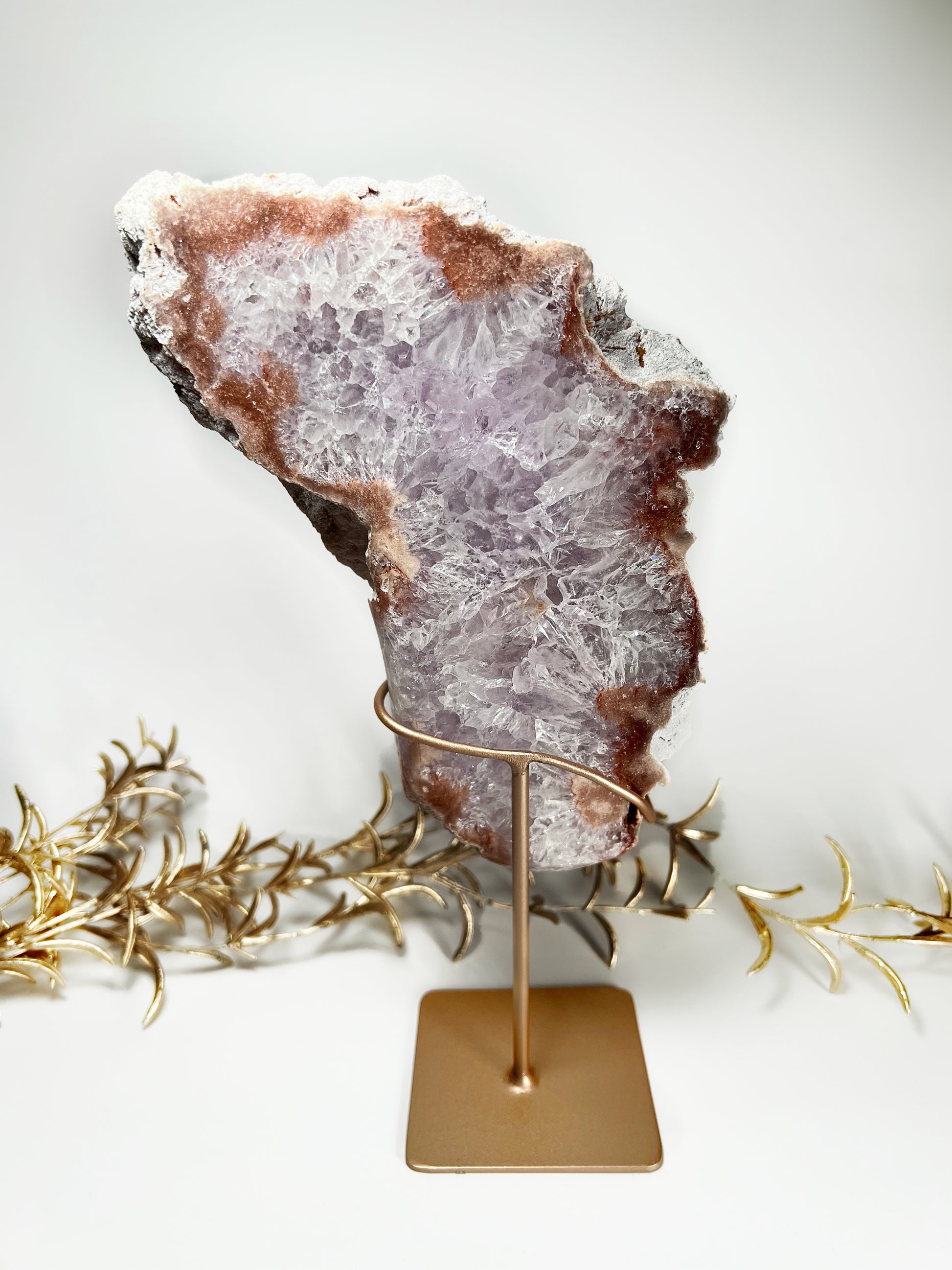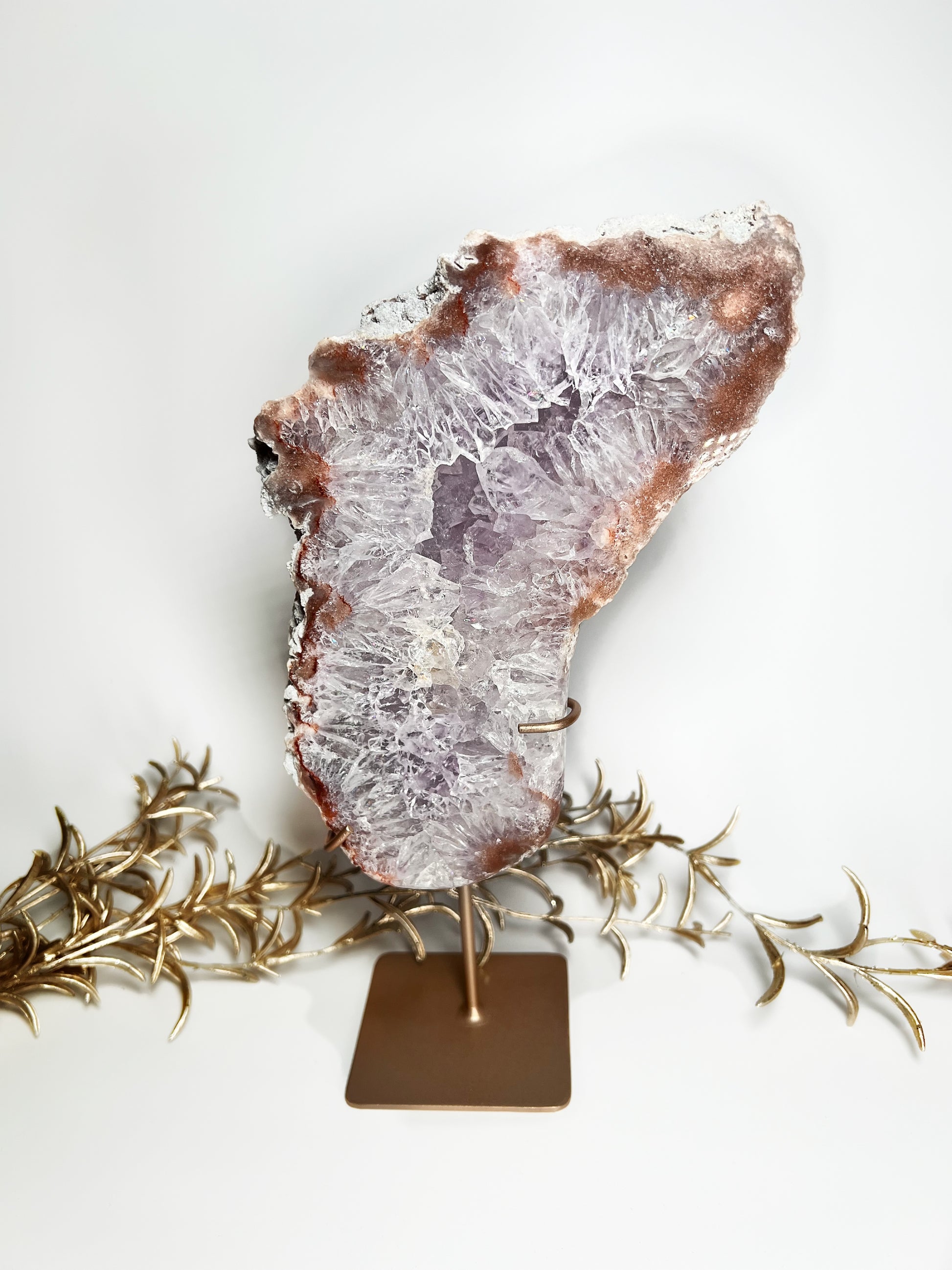 Diese wunderschöne Lila Amethyst Scheibe mit Pink Amethyst Rand kommt inklusive Ständer